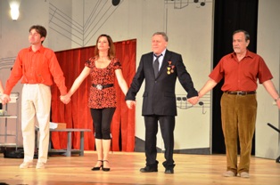 November 27-én kedden este a színházi évad második előadását, Dr. Vitéz Miklós-Vadnai László: MESEAUTÓ című zenés vígjátékát a budapesti Körúti Színház előadásában láthattuk A Művelődés Háza színháztermében. A nagy érdeklődés mellett bemutatott – Tahi-Tóth László, Vándor Éva, Gyebnár Csekka, Fila Balázs nevével fémjelzett – előadás nem okozott csalódást, a színészek lubickoltak a remekműben és méltán volt vastaps a produkció végén. Sárospatak és vonzáskörzetéből érkezett közönség ismét egy érdekes, jó színvonalú előadással lett gazdagabb és bízunk benne, hogy a következő darab is elnyeri a nézők érdeklődését. Terveink szerint február hónapban Csurka István – AZ IDŐ VASFOGA című szatírája kerül bemutatásra.