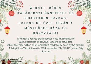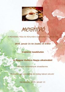 A Művelődés Háza és Könyvtára évek óta kiemelt figyelmet fordít a néptánc és a népzene közösségformáló erejének bemutatására. E hagyományt folytatva 2024 őszén újabb évaddal indult a „Húzzad édes muzsikásom…” táncházi sorozat, a nyolc alkalomból álló program a Csoóri Sándor Alap támogatásával valósult meg.