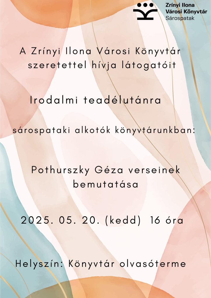A Csoóri Sándor Alap támogatásával valósult meg a népzene-oktatási program Sárospatakon, amelynek házigazdája A Művelődés Háza és Könyvtára volt. A projekt egy korábban csupán igényként megfogalmazódó kezdeményezést emelt szakmailag megalapozott szintre, és mintegy hatvan fő részvételével indította el a térség kulturális életében hiánypótló oktatási folyamatot.