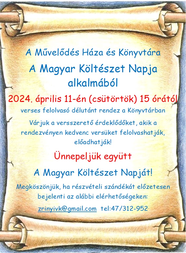 2024. április 11-én Könyvtárunk a Magyar Költészet Napja alkalmából rendhagyó műsorral készült eme nemes nap megünneplésére, amely nem mellesleg a magyar irodalom egyik legnevesebb alakjának, József Attilának a születésnapja.