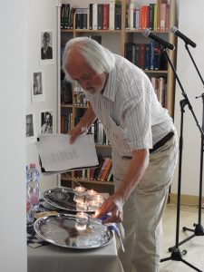 Dr. Egey Emese egyetemi docens bevezetőjében megismerhettük a műsor szerkesztésének kulisszatitkait. A vers szerető közönség odaadó figyelem hallgatta a Professzor Úr szavalatait, aki minden vers előtt egy mécses meggyújtásával jelezte az soron következő költemény kezdetét.