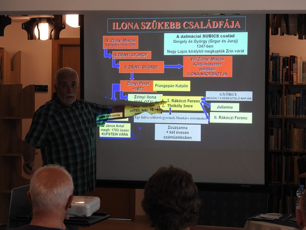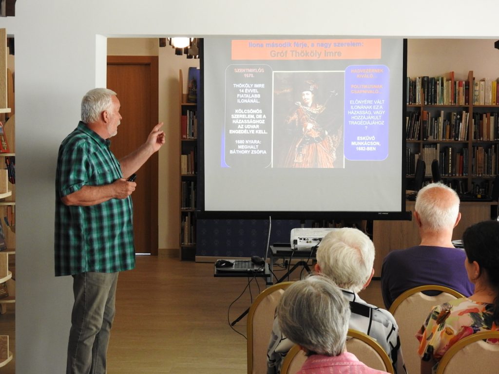 Elmondta, hogy minden regénye alapos kutatómunkával kezdődik. Számos könyvet, tanulmányt és eredeti forrást olvas el, hogy a lehető leghitelesebben ábrázolhassa a korabeli eseményeket és életmódot. Kiemelte, hogy a történelmi hűség mellett az emberi történetek és sorsok is rendkívül fontosak számára, a regényeiben megjelenő történelmi helyszínekre ellátogat. Az előadás egyik fontos eleme Zrínyi Ilona élete és munkássága volt, aki egyben könyvtárunk névadója is.