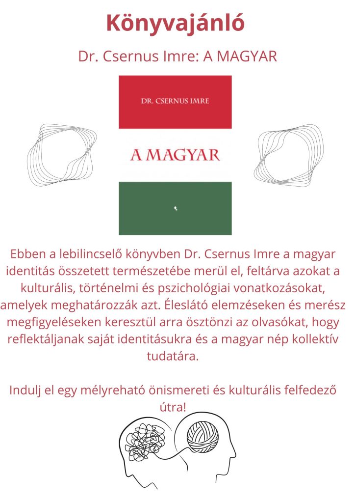 Ebben a lebilincselő könyvben Dr. Csernus Imre a magyar identitás összetett természetébe merül el, feltárva azokat a kulturális, történelmi és pszichológiai vonatkozásokat, amelyek meghatározzák azt. Éleslátó elemzéseken és merész megfigyeléseken keresztül arra ösztönzi az olvasókat, hogy reflektáljanak saját identitásukra és a magyar nép kollektív tudatára.