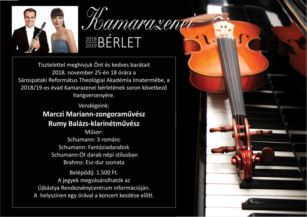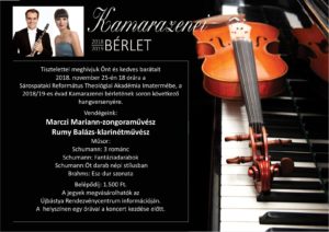 Kamarazenei bérlet A Művelődés Háza és Könyvtára szervezésében a Sárospataki Református Theológiai Akadémia Imatermében